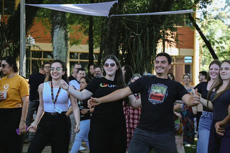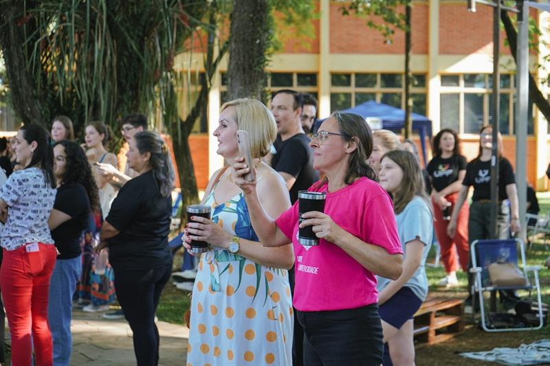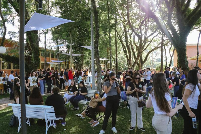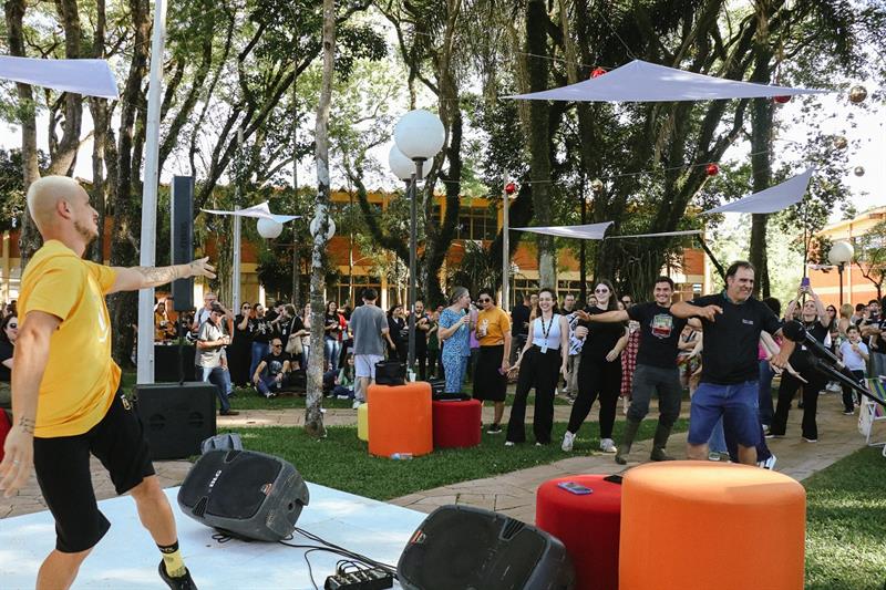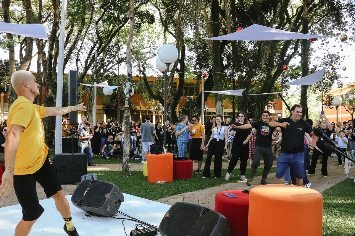 Citações em rankings internacionais, notas máximas em avaliações e ganhos acadêmicos significativos. Após um ano de muitas conquistas, professores, funcionários e estagiários da Universidade de Passo Fundo se reuniram para celebrar em mais uma edição do Momento UPF. O encontro foi realizado na tarde dessa quinta-feira, 18 de dezembro, no Bosque junto ao Integrado UPF. Reunida ao ar livre, a comunidade acadêmica aproveitou a tarde de sol que teve música, comida, encontros, dança e, claro, um momento merecido de pausa.