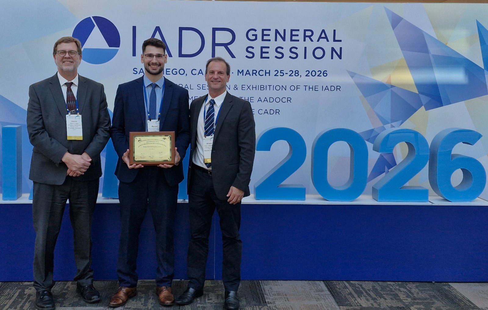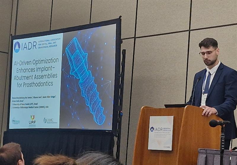 Durante o congresso, o doutorando Renan Brandenburg dos Santos foi destaque ao receber o prêmio Arthur R. Frechette New Investigator Award, reconhecimento concedido a pesquisadores com contribuições inovadoras na área. O trabalho premiado aborda o desenvolvimento de próteses sobre implantes utilizando ferramentas de design otimizado e inteligência artificial.