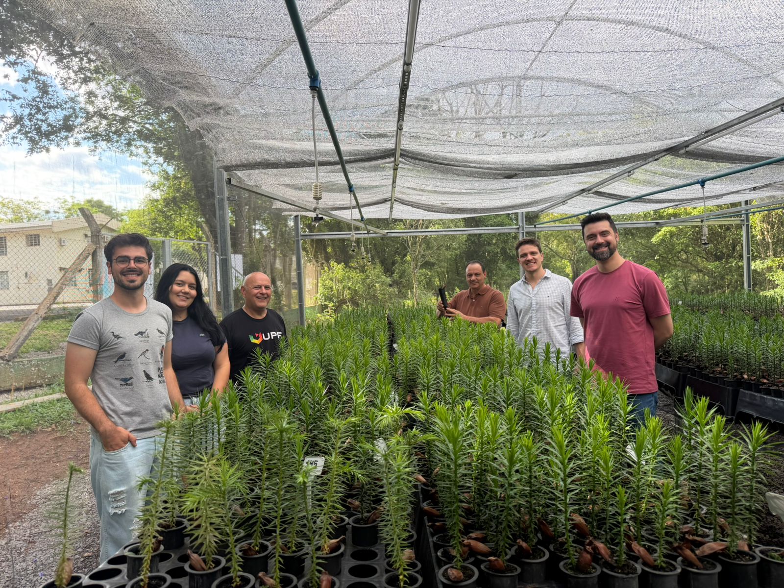 Durante a visita, Ilvandro e representantes da UPF conheceram o Viveiro Florestal Regional Professor Dirceu Vieira Torres, espaço vinculado ao LAMVIS. O local chamou atenção pela estrutura destinada à produção e conservação de espécies florestais, incluindo araucárias.