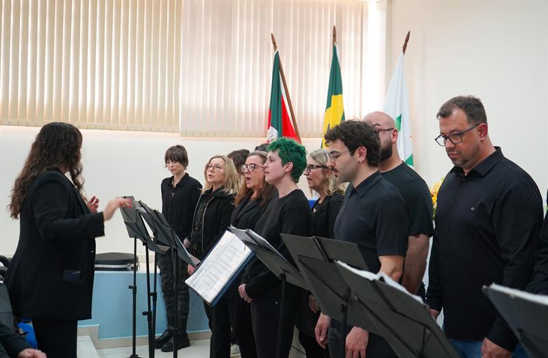 Durante a solenidade, o público foi recepcionado com uma apresentação artística do Coro Universitário da UPF, sob regência da professora Aline Bouvié. O momento também marcou uma homenagem ao professor Dr. Pedro Goergen, pela sua trajetória acadêmica e contribuição ao convênio trilateral, destacando o compromisso com o diálogo entre universidades latino-americanas.